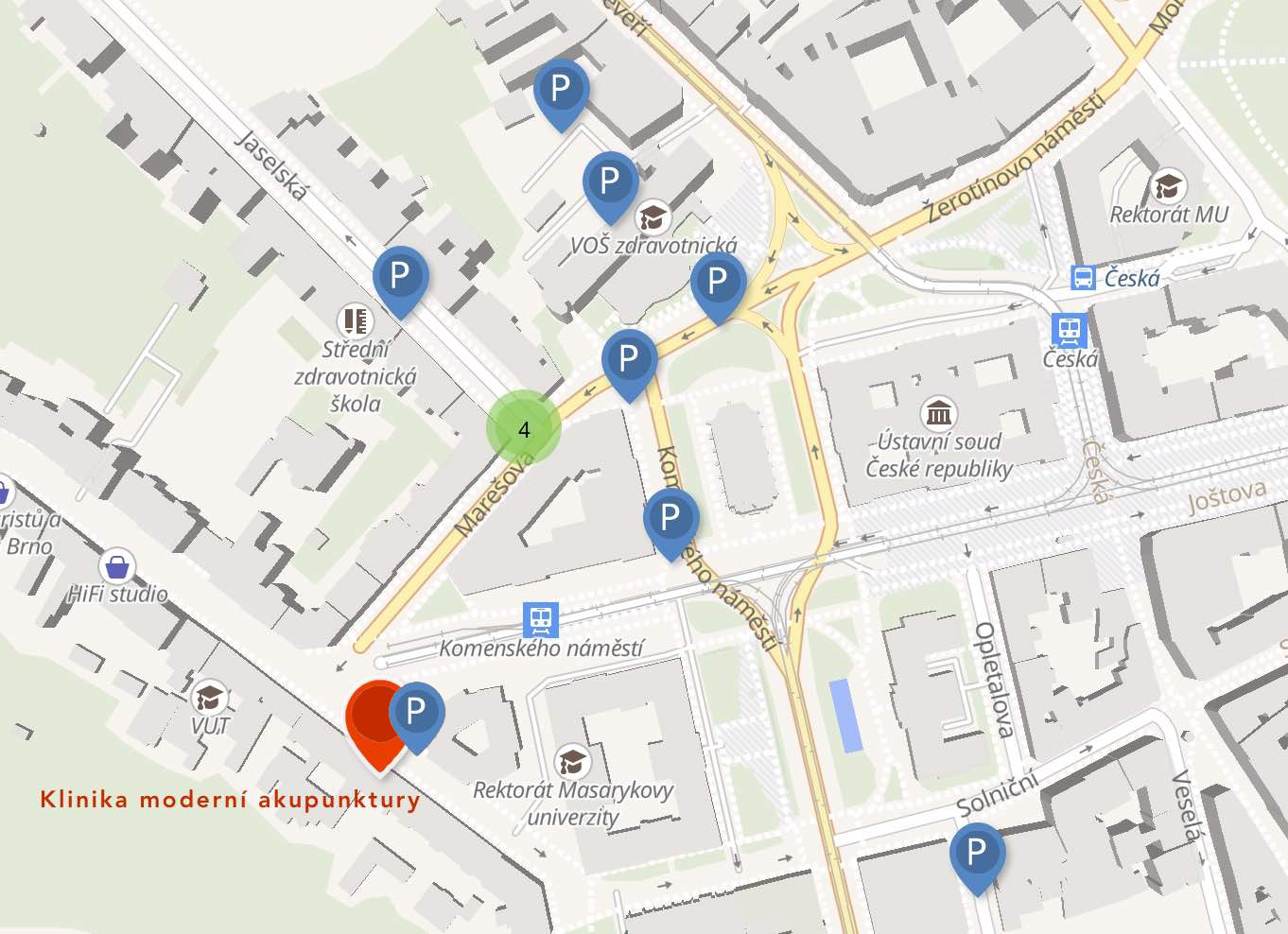 Parking is available on the adjacent streets marked as a blue zone. On weekdays from 6:00 AM to 5:00 PM, the first hour of parking is free, and each additional hour is charged at 30 CZK/hour. Even for visits shorter than one hour, you must register your license plate at www.parkovanivbrne.cz or at a parking meter on the street.