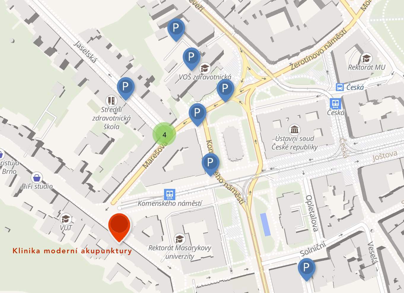 Můžete využít také vyhrazených parkovacích míst ZTP (se symbolem vozíčku). Nejbližší možnosti naleznete v mapce níže: